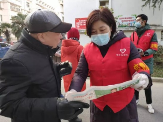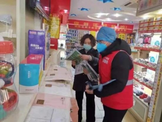 将防疫宣传单发放到商家和住户手中