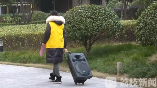 为了更好地让居民知晓疫情的防控知识,丁婷婷还拉着移动音箱在小区内进行流动宣传,引导大家坚定信心,共同做好疫情防控。