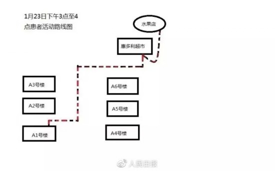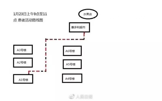 本人自述2020年1月23日9:00至11:00到惠多利超市购物, 15:00至16:00到惠多利超市购物,随后到小辛蔬菜水果店购物;