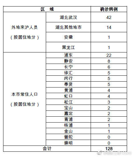 确诊病例中,男性67例,女性61例;年龄最大88岁,最小7岁;84例有湖北居住或旅行史,2例有湖北以外省市居住或旅行史,40例有相关确诊病例接触史,2例无湖北接触史;外地来沪人员58例,本市常住人员70例。