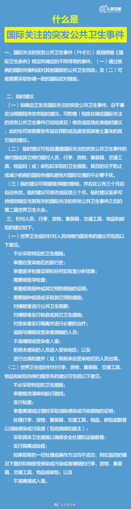 北京时间1月31日凌晨, 世界卫生组织总干事谭德塞宣布新型冠状病毒感染的肺炎疫情构成“国际关注的突发公共卫生事件”,不建议对中国采取旅行和贸易限制。