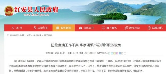 红安县迅速成立联合调查组,调查组反馈,华家河镇党委、政府在新型冠状病毒肺炎疫情防控期间,存在工作不实、作风不实,已经免去该镇党委书记、镇长职务。