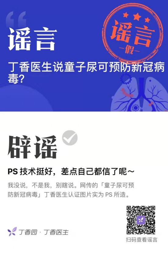 (原标题:童子尿可预防“新冠”?丁香医生:PS技术真好)