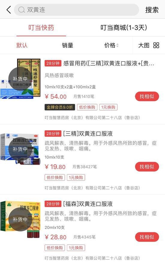 1月31日晚,新华社发布消息称,中国科学院上海药物所和武汉病毒所经过联合研究,初步发现中成药双黄连口服液可抑制新型冠状病毒。新京报记者随即查询各大药房网上销售渠道发现,“双黄连口服液”已脱销。此外,连花清瘟胶囊、清开灵、通宣理肺片等也都处于缺货状态。