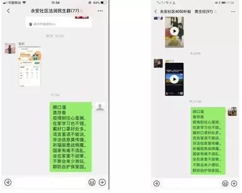 不能出门,微信群、朋友圈成为群众最重要的交流工具。每天上午,永安街道通过社区党员群、居民代表群、志愿者群等微信群发送有关新型冠状病毒感染的肺炎的防疫知识和日常防护常识,再由这些党员、居民代表、志愿者等把“微知识”传递到家家户户。