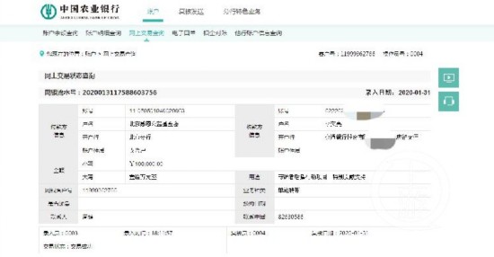 2月1日,北京感恩公益基金会出具的银行转账记录显示,1月31日下午6时11分,北京感恩公益基金会给李文亮的账户拨付了10万元,用途为“守护者后盾行动——特别贡献支持”。