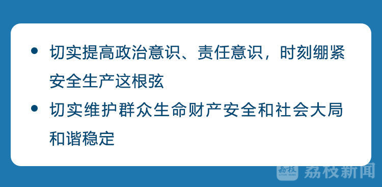 会议指出,习近平总书记关于安全生产工作的重要指示和李克强总理等中央领导的批示,再次强调了安全生产的极端重要性,思想深刻、内涵丰富,具有非常强的指导性、针对性。我们要深入学习贯彻习近平总书记重要指示精神,坚决贯彻落实党中央、国务院部署要求,切实提高政治意识、责任意识,时刻绷紧安全生产这根弦,深刻反思汲取我省近年来各类安全生产事故的惨痛教训,更加从规律上、本质上研究解决安全生产中的深层次问题,推动全省安全生产形势稳定向好,坚决防范遏制重特大事故发生,切实维护群众生命财产安全和社会大局和谐稳定。