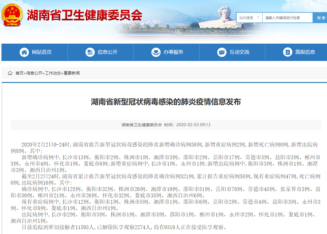 荔枝新闻讯 据湖南省卫健委官网消息,2020年2月2日0-24时,湖南省报告新型冠状病毒感染的肺炎新增确诊病例58例,新增重症病例2例,新增死亡病例0例,新增出院病例8例。其中: