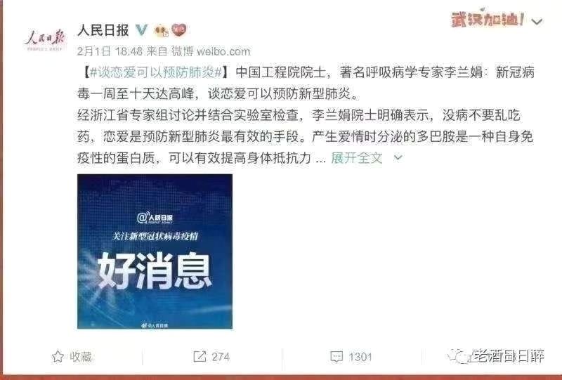 荔枝新闻讯 近日,网络有谣言称人民日报发微博表示“谈恋爱可以预防肺炎”,对此,记者查证人民日报官方微博发现人民日报并没有发过此条微博,系谣言。