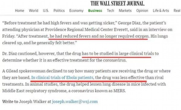 其次,“瑞德西韦”这个药物本来是用来对付埃博拉病毒的,但其临床试验的效果不如其他疗法。在动物试验中,该药物曾被发现能缓解小鼠被SARS和MERS等冠状病毒感染的肺部病情,但这一疗效并未经过严格人体临床试验。