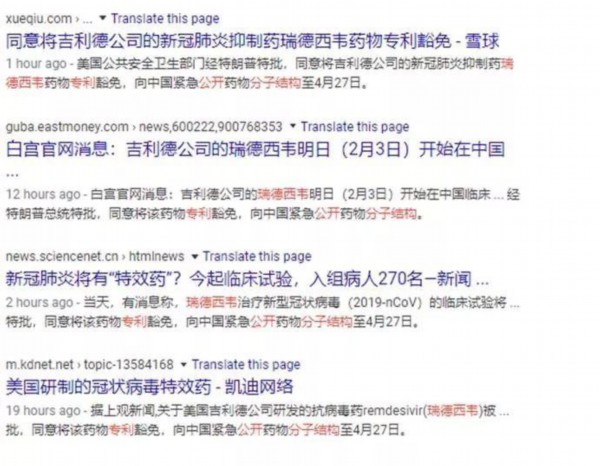 如下图所示,从昨天下午开始,中国国内的微博平台上开始出现一则消息,称美国药企吉利德一种名为“瑞德西韦”的药物,被发现对新型冠状病毒有效,而为了帮助中国使用此药物对抗疫情,美国总统特朗普已经特批豁免该药物对中国的专利,让中国可以直接仿制该药物。