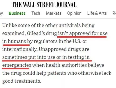 首先,根据两家美国媒体的报道,“瑞德西韦”这个药物目前并未在美国或全世界任何一个国家获批上市,其疗效和安全性也并未被严格确认,只能依照美国的法规进行“同情使用”,即当病人缺乏有效的疗法时,可以用这种没上市的药物来试试管不管用。