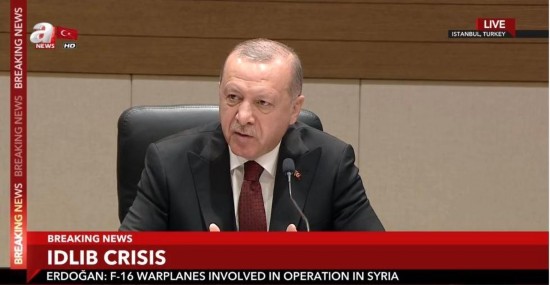 叙利亚政府军当地时间3日在伊德利卜发动炮击,截至目前4名土耳其士兵在袭击中身亡,另有9人受伤。土耳其总统埃尔多安随即在伊斯坦布尔发表讲话,称土方已经就此采取了报复行动,30至35名叙利亚政府军武装力量在袭击中身亡,土F-16战机还在持续击中打击目标。埃尔多安表示,土耳其将在叙利亚继续展开相关行动,保护其国土安全。