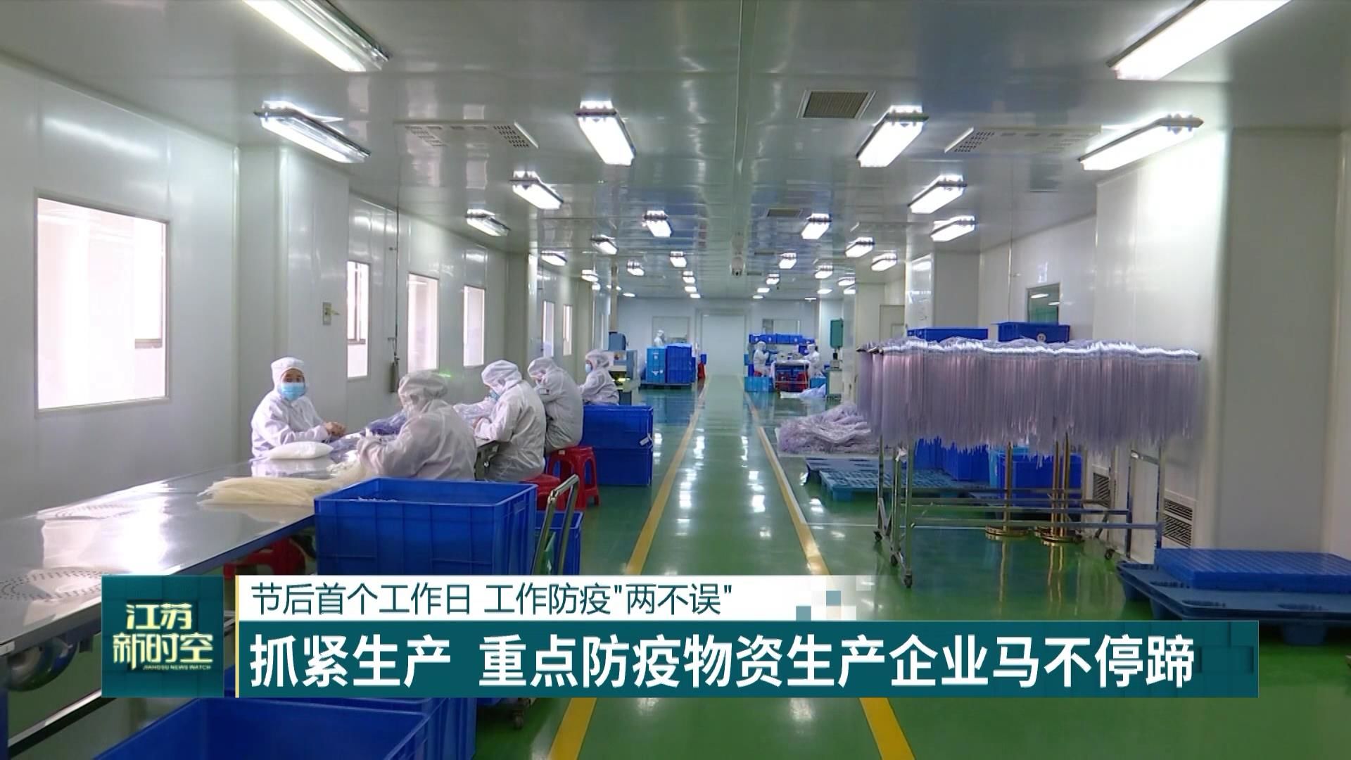 而对于疫情防控物资生产等重点企业,在加紧复工生产的同时,也严格落实好自身防控防护措施,保障防疫药品和物资的生产储备和有序供应。江苏康乐医疗器械有限公司已经接到湖北多家医院的600多万订单,36名工人正穿戴无尘服、佩戴口罩,两班倒抓紧生产一次性使用输氧面罩和高压注射器。而南京经济开发区1月31日批准了10家医药重点企业复工复产,同时强化对复工企业的严格监管,开展实地监督检查,确保复工企业有序生产和有效防控双落实。