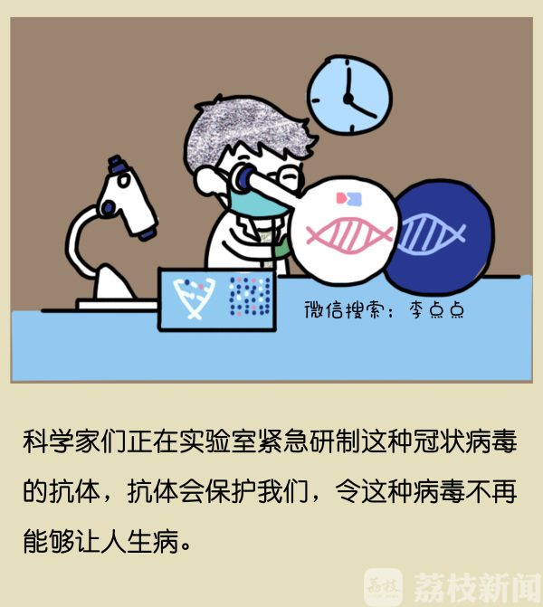 疫情发生后,孩子们感受到了气氛的严峻,李点点的好友安潇写了一个关于冠状病毒的绘本,希望用适当的方式,向孩子解释发生的一切。李点点知道后,主动要求帮忙重新画图,让孩子更能理解绘本。
