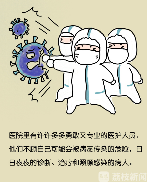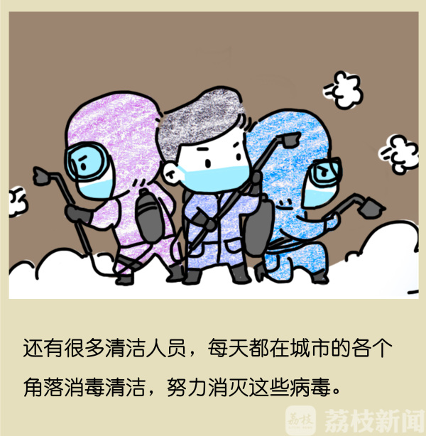 “为什么爸妈要求你少出门,因为在外面有很多人正在生病,这种病来自于一种新发现的病毒,病毒是一种微小的非细胞生物,你的眼睛看不到它。”从新型冠状病毒与野生动物的关系,人感染的肺炎症状,再到各行各业工作者众志成城,共战“疫”情,绘本用浅显易懂的文字,生动的插图,告诉孩子外面正在发生的事。让孩子们不用担心,做好个人防护,听从父母的安排,就是贡献了自己的力量。“多读书,吃好吃的东西,然后有一天爸妈会告诉你,我们打赢了这场病毒的战役。”