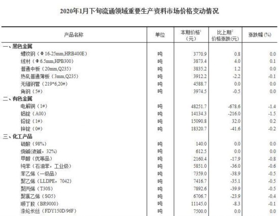 据国家统计局网站消息,国家统计局今日发布了2020年1月下旬流通领域重要生产资料市场价格变动情况。据对24个省(区、市)流通领域9大类50种重要生产资料市场价格的监测显示,2020年1月下旬与1月中旬相比,9种产品价格上涨,20种下降,21种持平。其中,生猪(外三元)价格环比涨2.2%。