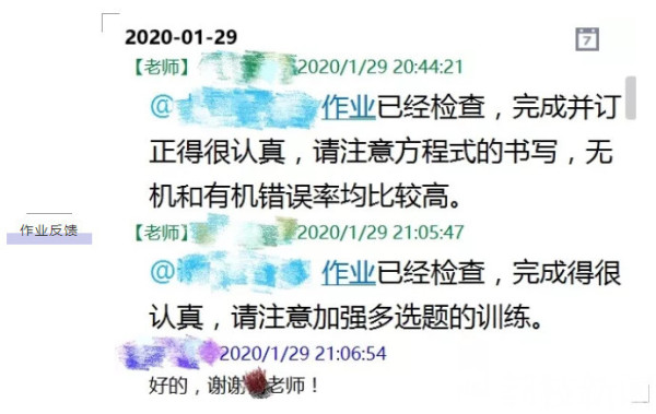 教师通过网络检查寒假作业,各班课代表汇总作业问题并及时反馈,确保讲评的针对性。各学科答疑辅导期间,助教配合点名并及时反馈给班主任,确保上线率。