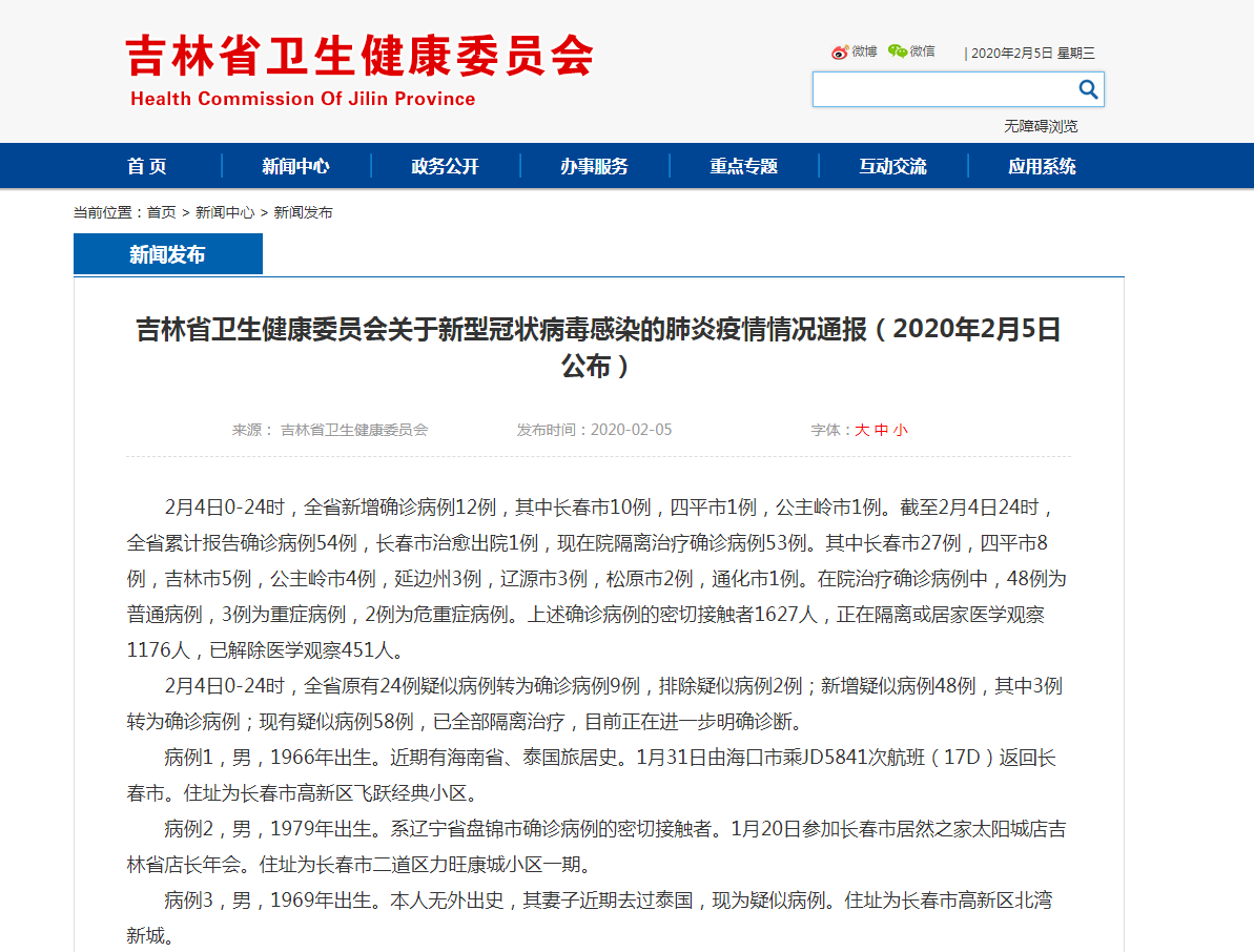 2月4日0-24时,吉林省原有24例疑似病例转为确诊病例9例,排除疑似病例2例;新增疑似病例48例,其中3例转为确诊病例;现有疑似病例58例,已全部隔离治疗,目前正在进一步明确诊断。