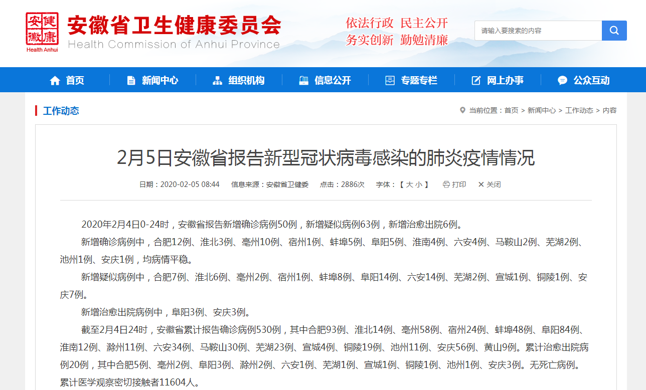 荔枝新闻讯 根据安徽省卫健委官网消息,2020年2月4日0—24时,安徽省报告新增确诊病例50例,新增疑似病例63例,新增治愈出院6例。
