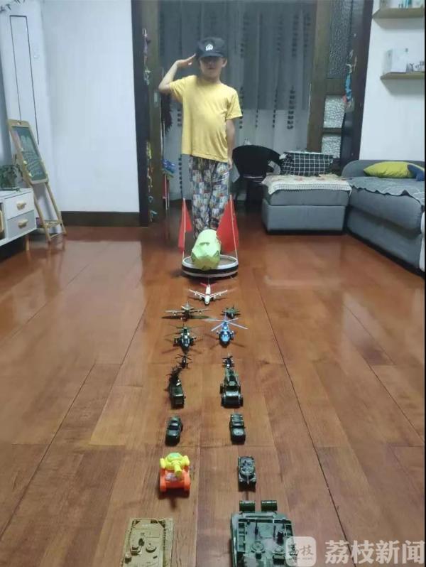 出发当天,赵丹华对7岁的儿子六六说:“武汉那里有好多小怪兽,妈妈要和它们战斗。”懂事的六六拿出一幅漫画送给妈妈,上面写着“打bai(败)病毒”,并用坚定的小眼神看着爸爸妈妈说:“外面的病毒交给你们了,我有坦克部队,家里的我来消灭。”