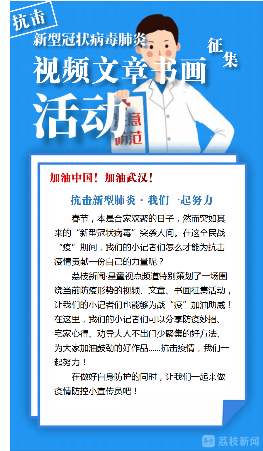 (2)视频题材不限,可以展现你在本次疫情防护过程中的“宅”家宝典、防护妙招、加油鼓劲现场等;