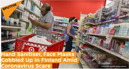 据俄罗斯卫星通讯社5日报道,为预防新型冠状病毒肺炎,芬兰多地商店的手部消毒液及口罩均已售罄。