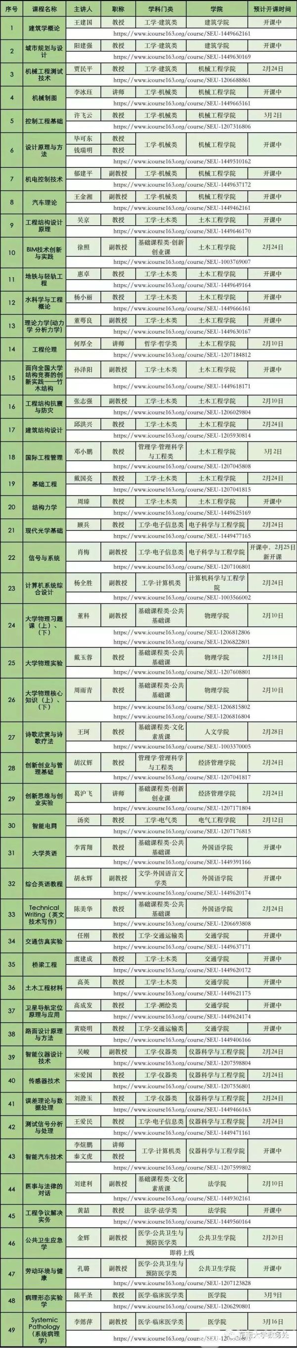 停课不停教、停课不停学,作为一所以工科为主要特色的综合性、研究型大学,东南大学积极响应教育部“停课不停学”的战略部署,集中校内优质教学资源,在“中国大学MOOC”平台推出95门课程。