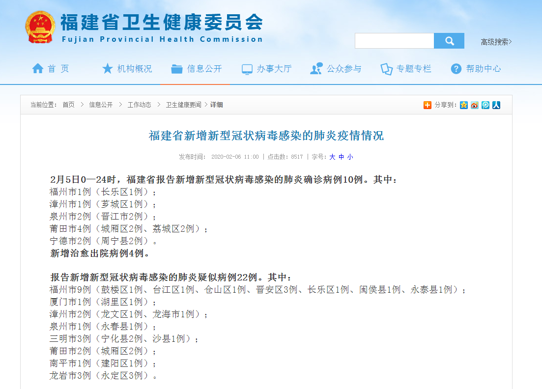 福建省卫健委官网截图