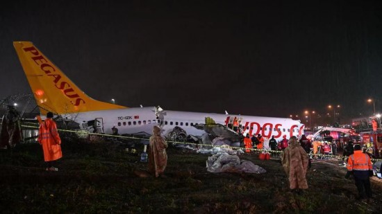 伊斯坦布尔州长阿里·耶里卡亚(Ali Yerlikaya)透露,事故飞机为飞马航空公司的一架波音737-800客机,机上搭乘乘客人数为171名,另有6名机组人员。飞机在着陆时冲出跑道,在撞击中短暂起火但迅速熄灭。机身受损严重,断裂成三部分,驾驶舱完全脱离机身。