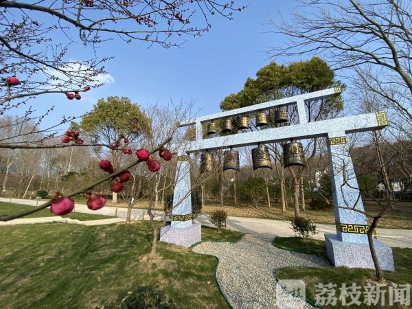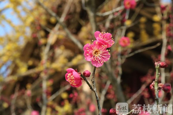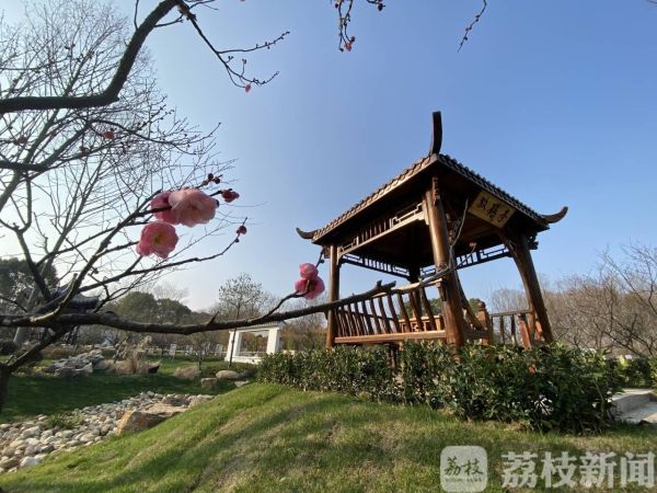 近期阳光明媚,温度回升,南京梅花山梅花也悄然绽放。
