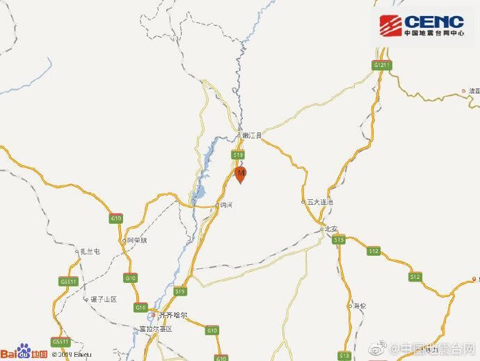 荔枝新闻讯 中国地震台网正式测定:02月07日08时12分在黑龙江黑河市嫩江县(北纬48.74度,东经125.25度)发生3.8级地震,震源深度14千米。