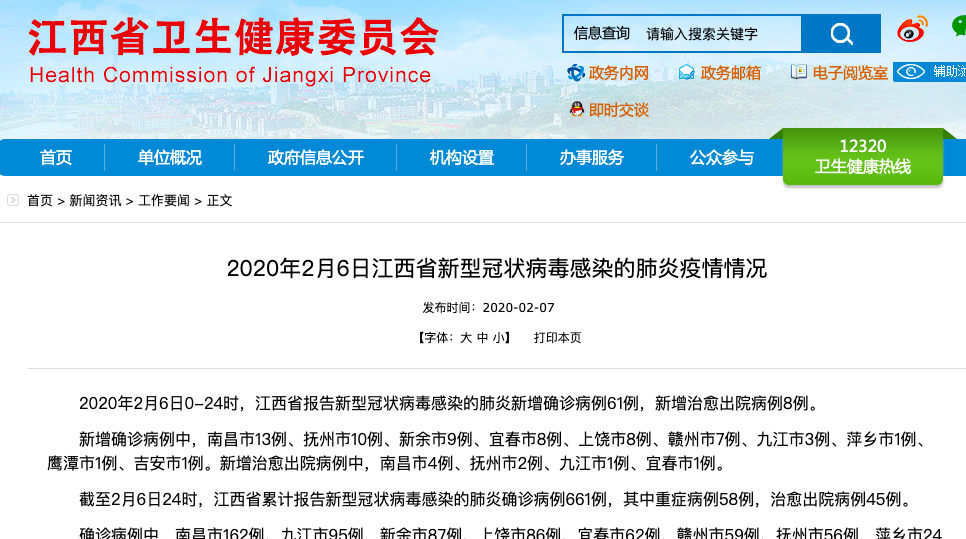 江西卫健委官网截图