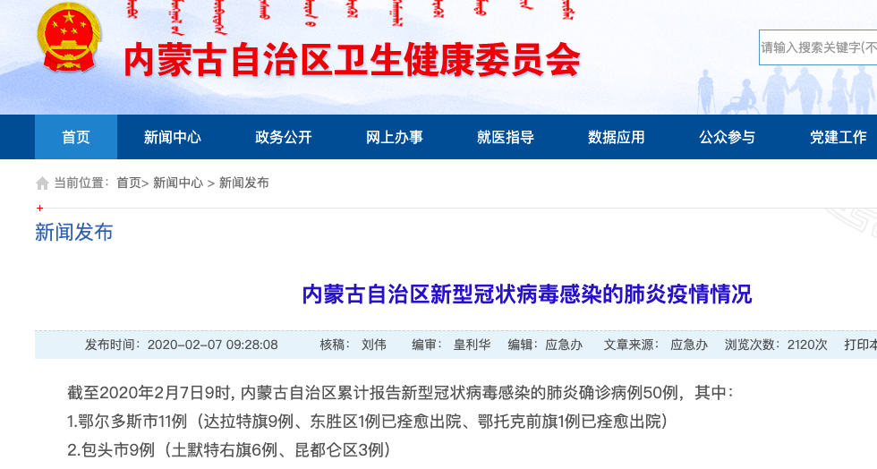 内蒙古卫健委官网截图