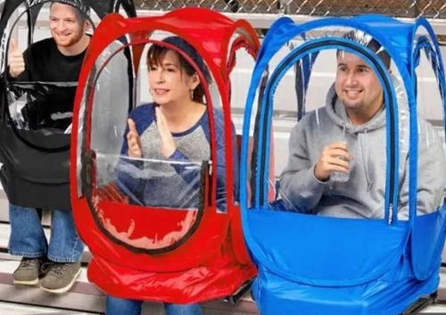 据《太阳报》介绍,这种装备原本是为那些天气状况不佳时想在现场观看体育比赛,但又不想被淋湿的人准备,2010年由美国里克 佩斯科维茨(Rick Pescovitz)公司发明。