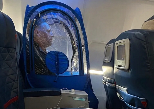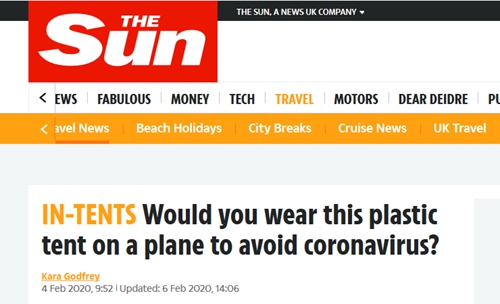 【环球网报道 记者 王博雅琪】受新型冠状病毒疫情影响,不少人开始担心,平日出行,比如坐飞机时,如何降低自己感染病毒的风险?英国《太阳报》4日刊文“出招”:可以试着躲进一种便携式透明运动帐篷。