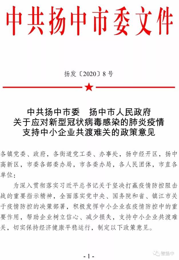 为深入贯彻落实习近平总书记关于坚决打赢疫情防控阻击战的重要指示精神,全面落实党中央、国务院和省、镇江市关于疫情防控的决策部署,积极发挥中小企业在疫情防控中的重要作用,帮助企业树立信心、减少损失,支持中小企业共渡难关,切实保持经济健康平稳运行,制定以下政策意见。