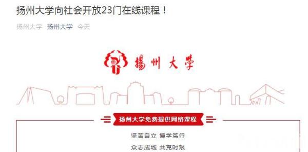 疫情防控是当前最重要的事情,而网络教学任务也在有条不紊地展开,今天(2月7号),扬州大学向社会开放23门的精品网络课程,大伙在家也可以学习起来!