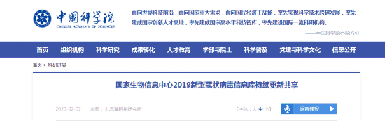 中国科学院7日在官网上发文披露,国家生物信息中心(CNCB)/国家基因组科学数据中心(NGDC)首批自主收录的5株2019新型冠状病毒基因组序列实现与美国NCBI核酸数据库GenBank数据同步与共享。