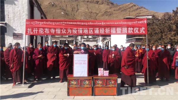 图为西藏日喀则市扎什伦布寺僧人为疫区祈福捐款 图片来源:扎什伦布寺提供