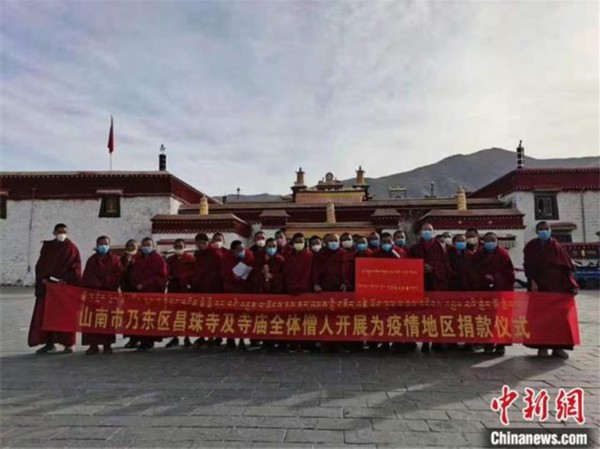 2月6日,西藏自治区山南市宗教界发起了一场捐款活动,来自山南市乃东区昌珠寺、桑耶寺、扎囊县敏珠林寺的僧尼自发筹得资金近45万元,捐助给湖北武汉等疫情高发地区。