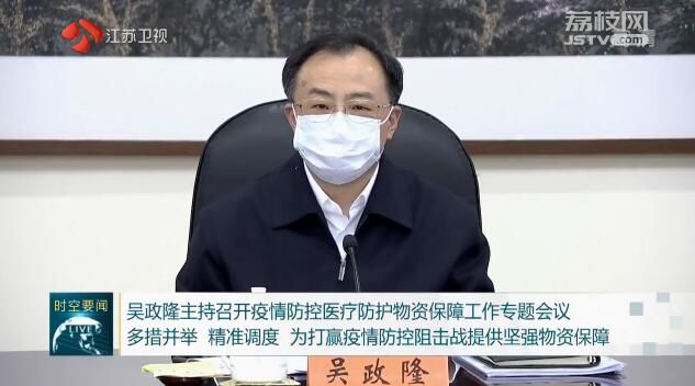 在认真听取有关部门关于重点物资的到货、调度以及供需等情况汇报后。吴政隆指出,生命重于泰山,疫情就是命令,防控就是责任。近一段时间以来,在省委、省政府坚强领导下,在省疫情防控工作领导小组指挥调度下,省市密切配合、通力协作,千方百计做好重点医疗防护物资筹集、生产、调配、供应,全力保障了防控工作的需要。当前,疫情防控的形势依然严峻复杂,处在关键时期,进一步做好口罩、防护服等重点物资保障工作是打赢阻击战的重中之重。要多措并举增加供给,一方面抓好生产,在做好安全防护、抓好安全生产的前提下,现有生产企业要尽快开足马力,满负荷生产,努力扩大产能,同时充分调动社会力量的积极性,省有关部门积极帮助解决资金、资质、生产场地、设备购置和原材料采购等实际困难,鼓励支持企业出口转内销,有条件的转产转型,迅速形成一批新的战斗力;一方面要八仙过海、各显神通,千方百计扩大进口。要科学合理使用资源,特别是在口罩使用方面,要在做好不同等级暴露风险人员数量统计的基础上,分别确定不同类型口罩的数量,防止资源错配和浪费,真正把好钢用在刀刃上。要牢固树立大局意识和全局观念,压紧压实属地责任,区分轻重缓急,精准调度资源,不折不扣完成好国家下达的调拨任务和满足支援湖北的需要,保障好我省疫情防控一线的需要。要科学研判疫情发展的新形势,未雨绸缪、超前谋划做好后续阶段重点医疗防护物资的生产、订购、储备等工作。要充分运用现代化信息技术等多种手段,健全完善务实高效精准的指挥体系,以最短的时间、最有效的衔接、最直接的方式把医疗防护的生产设备设施和紧缺物资送到最急需的地方和战斗在最前沿的医护人员手中,为打赢疫情防控阻击战提供坚强物资保障。