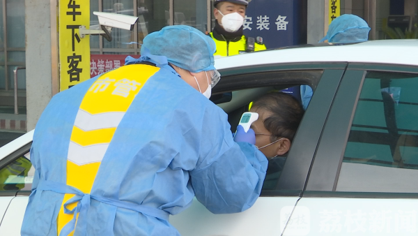 沪宁高速南京收费站24小时广播:前方疫情检查,请戴上口罩,放下车窗,关闭空调,等待测温。