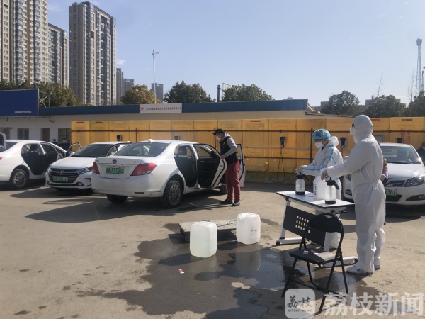 滴滴出行则在南京设置了司机防疫服务站,免费为网约车消毒。在位于建邺区的一处服务点记者看到,有近20辆网约车正在排队等待消毒。穿着防护服的工作人员为司机师傅发放口罩等防疫物资,现场也有调配好的84消毒液可以免费提供。滴滴出行南京市场部负责人陈畅表示,司机在入场前会进行体温测量,随后工作人员会协助司机进行车辆的消毒,重点是跟人手接触车门把手、安全带包括汽车后备箱等部位。