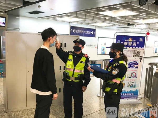 另外,南京地铁客流量较大的重点车站已经安装了门框式的红外线测温仪,在客流快速通过时能够实现体温筛查。如果发现体温异常的乘客,民警会在做好自身防护的前提下,对乘客再次进行体温的测量。测量以后,如果依然有异常,民警会对乘客进行劝离。“我们会联系相关部门和医院,及时把乘客送医,然后进行再确认。同时我们也会联系他的家人。”周茜说。