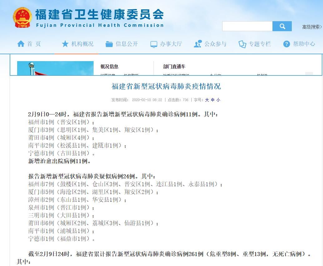 福建卫健委官网截图
