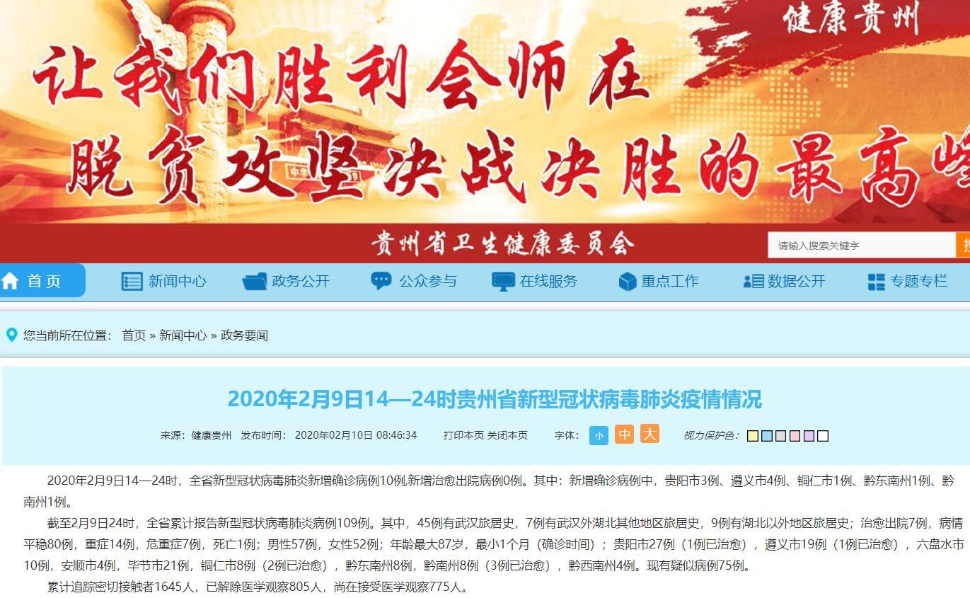 贵州卫健委官网截图