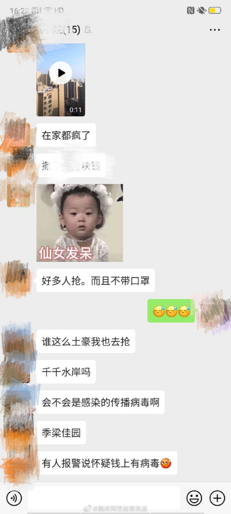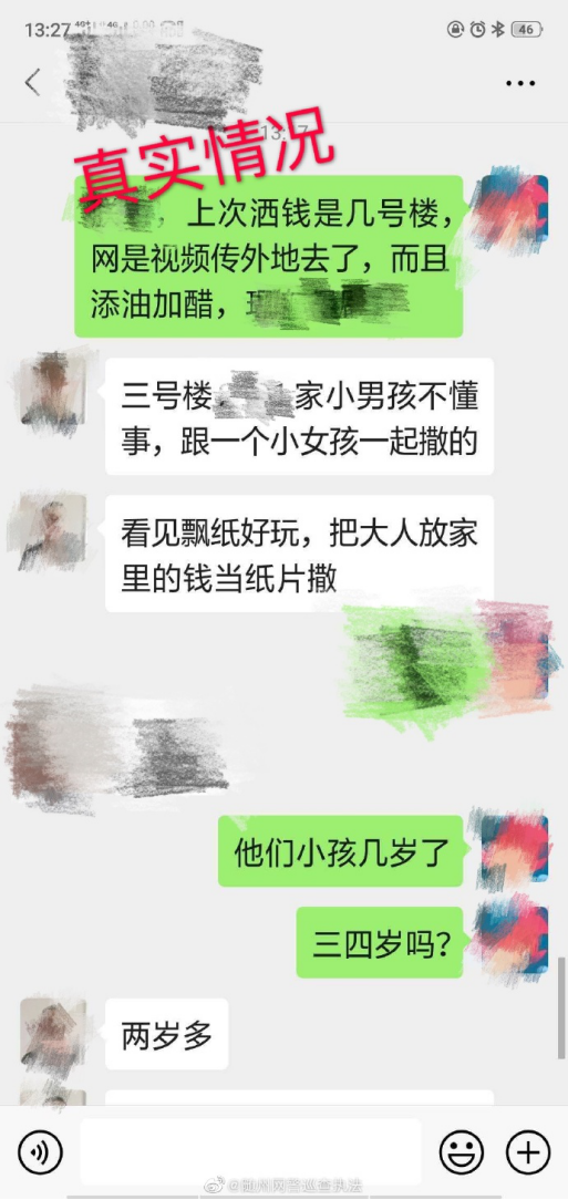 随州警方经核实发现,所谓的“撒钱视频”实为随州市季梁佳园小区业主家三岁熊孩子趁父母不注意在阳台把钱当纸片抛撒,并非因感染病毒,厌世所致。