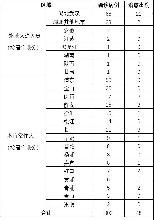 截至2月10日24时,上海市已累计排除疑似病例1186例,发现确诊病例302例。确诊病例中,男性158例,女性144例;年龄最大88岁,最小7月龄;143例有湖北居住或旅行史,24例有湖北以外地区居住或旅行史,132例有相关病例接触史,3例正在流行病学调查中;外地来沪人员97例,上海市常住人口205例。具体情况如下: