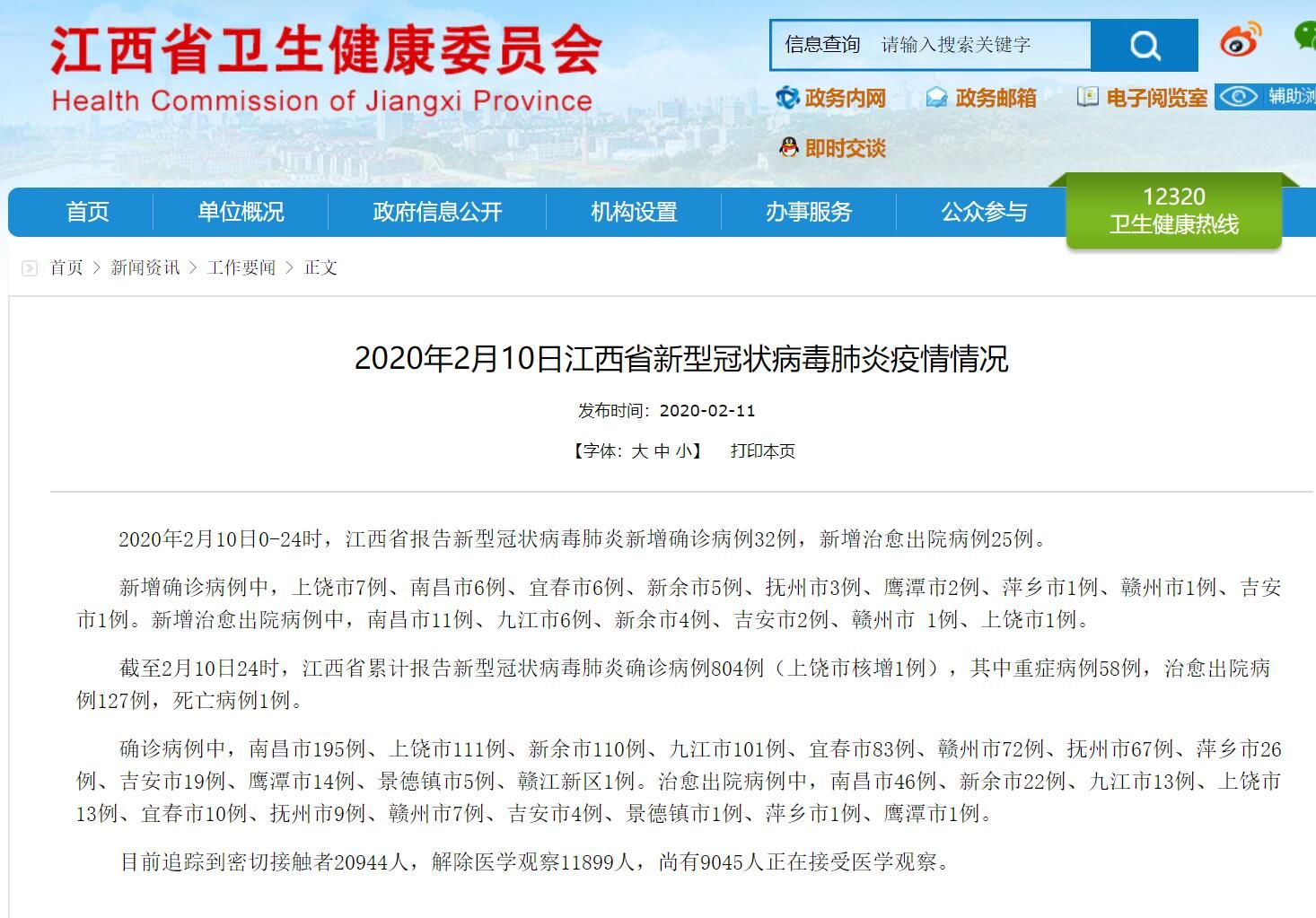 江西卫健委官网截图